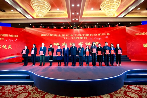 12月2日,由中华中医药学会主办的“第六届岐黄论坛”在北京会议中心举行。论坛期间,第二届中国中医药科技期刊做精做强专家组组长黄璐琦院士宣读了入选2023年度中医药中文科技期刊分级目录的期刊名单,其中11本期刊入选T1级中医药中文科技期刊目录,44本期刊入选T2级中医药中文科技期刊目录。中国工程院院士张伯礼教授、中国工程院院士丛斌教授和国医大师王庆国教授为T1、T2级期刊代表颁发了入选证书。