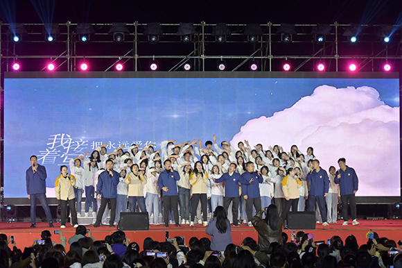 晚会在校区全体辅导员老师与艺术团学生的合唱歌声中落幕。