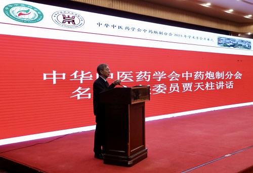 贾天柱在讲话中强调了学会的宗旨:禀雷公制法,扬炮制精华;学会的精神:亲力亲为,自强自立,团结团队,共兴共祺。他希望全体中药炮制分会委员要遵守炮制分会纪律,积极参加炮制分会各项活动。