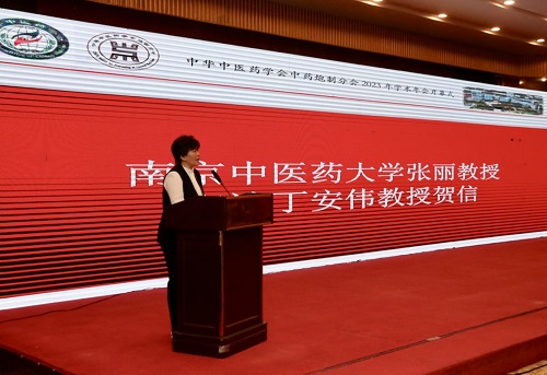 南京中医药大学张丽教授宣读了资深炮制专家南京中医药大学丁安伟教授的贺信,带来了老炮制人对中药炮制分会发展的关怀。