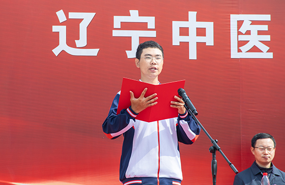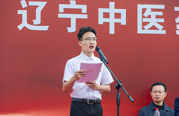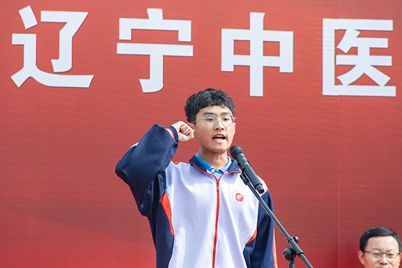 辽宁省大学生年度影响力人物、2019级针灸推拿学专业王德羽代表在校生发言。
