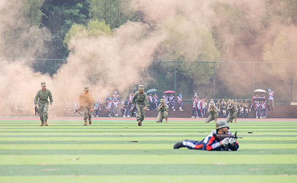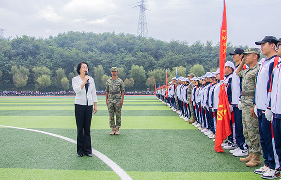 崔岩代表军训部队讲话,他肯定了全体学员在军训中的表现,鼓励同学们在时代洪流中锻造高尚品质,矢志报国。