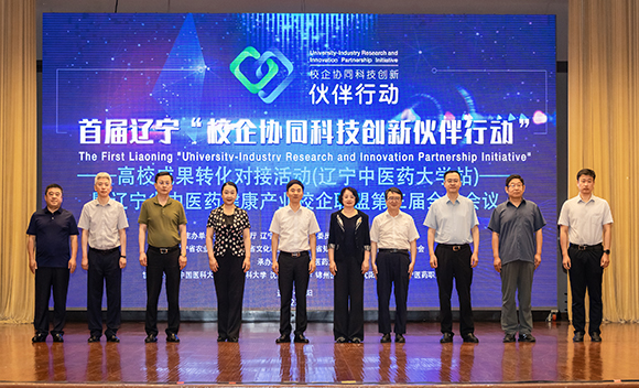 辽宁省教育厅党组成员、副厅长罗文波致辞,他表示,科技创新关系全局、任务艰巨,是一项系统工程。辽宁省教育厅将以此为契机,为中医药科技成果转化搭建平台,为中医药科技成果扎根厚植沃土。他强调,各高校要紧密结合学习贯彻习近平新时代中国特色社会主义思想主题教育,聚焦辽宁全面振兴新突破三年行动,全面推进高等教育综合改革,围绕《伙伴行动实施方案》重点任务,全力提升校企协同能力,将高校科教优势、人才优势转化为经济发展优势,为辽宁全面振兴新突破贡献校企协同力量。