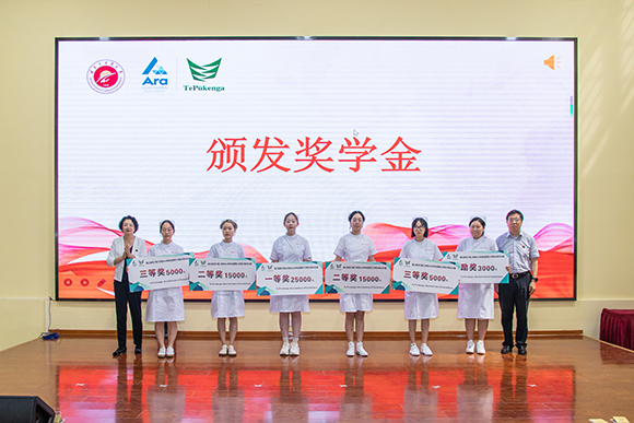 随后,吕晓东、戴旭为2020级获奖学生颁发国立新西兰理工学院Ara坎特伯雷理工学院分院校长奖学金;李超、李睿、陈冰、常亮、范艳、葛骁欧、Steven Liu共同为2021级学生颁发学籍注册函。