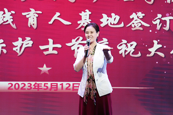 曲滋娇代表辽宁芭蕾舞团向学校党委的邀请和信任表示感谢,同时向全体护理工作者致以节日的祝福。