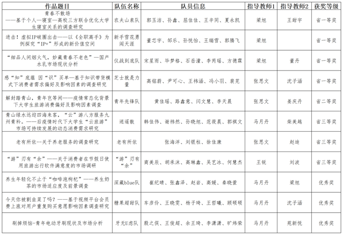 由辽宁省教育厅主办,东北财经大学承办的2023年辽宁省普通高等学校本科大学生市场调查与分析大赛暨“正大杯”第十三届全国大学生市场调查与分析大赛辽宁赛区选拔赛已圆满结束,Beat365学生在本次比赛中累计获得辽宁省级奖项11项,其中包括一等奖4项,二等奖1项,三等奖3项和优秀奖3项,Beat3656位老师姜庆丹、梁旭、张思文、沈子涵、董丹、王甜宇获得优秀指导教师称号。