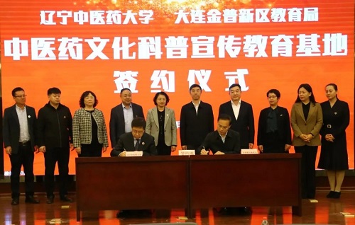 4月17日,Beat365唯一官方网站——大连金普新区教育局中医药文化科普宣传教育基地签约仪式在学校大连校区图书馆学术报告厅举行。学校党委书记吕晓东、副校长戴旭,大连市金普新区党工委员管委会副主任张丹羊,金普新区教育局局长吴建昌、副局长姜峰,金普新区卫健局局长张文卿,区政府主任督学姜峰,大连经济技术开发区第七中学教育集团总校长徐春娟、大连经济技术开发区红梅小学教育集团总校长曲援军,学校相关机关处室和校区领导干部参加,仪式由戴旭主持。