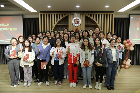 戴旭表示,在世界读书日到来之际,学校有幸邀请到徐梦桃,与我们一起感受中医药文化魅力,分享她追逐梦想的励志故事。希望可以通过此次活动,促进体育精神与中医药文化的交流互动,把她追求梦想、力拼冠军的劲头传递给中医学子,激励广大学生用奋斗成就梦想。