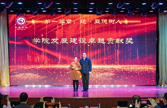 郑洪新教授在发言中代表全院教师向一直以来对我院各项工作予以支持和帮助的各级领导表示感谢,同时她结合表彰大会的主题,表达了一位老教师对中医药未来发展所寄予的希望。她寄语学院青年教师和中医学子要在中医药发展的大好形势下,研学经典,传承创新,希望大家在中医药的广阔舞台上施展才干,让中医薪火代代相传,生生不息。