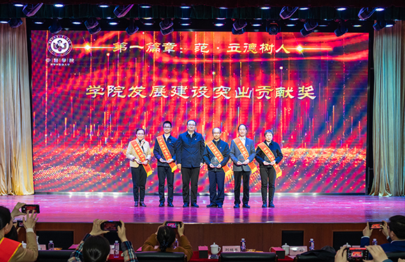 刘继东在讲话中代表学校向所有受表彰的集体和个人表示热烈祝贺,向从教多年、为党的教育事业兢兢业业、无私奉献的老教师和所有坚守在自己岗位的教职工致以崇高的敬意。他表示,学校高度肯定本次活动,本次表彰不仅全面总结了过去一年中医学院所取得的各项成绩,更有利于全院师生提振信心、凝聚人心,为未来培养更多优秀人才注入新的活力。他对学院发展提出殷切希望,希望中医学院全体师生团结奋斗共同擘画出学院事业的美好蓝图,凝聚起推动大学整体发展的磅礴力量。