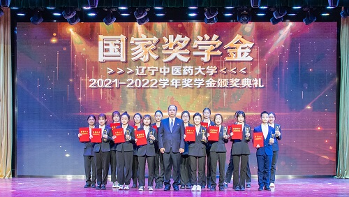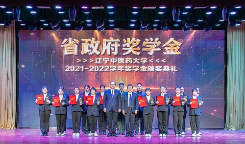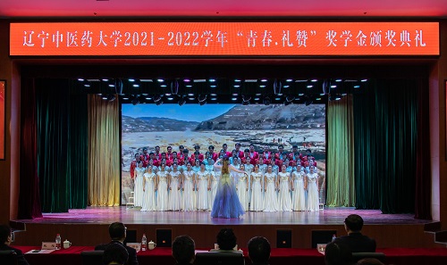 颁奖典礼在中医学院学生激昂的诗朗诵《我们,出发!》中拉开帷幕。学校对2021-2022学年获得各项奖学金的优秀学子进行表彰,现场播放了奖学金获奖学生宣传视频,张锦徽为“国家奖学金”获奖学生颁奖;刘继东、戴旭为“省政府奖学金”获奖学生颁奖;吕晓东为“校长奖学金”获奖学生颁奖。