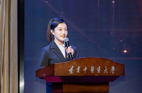 药学院刘芳彤、中医学院季天民、针灸推拿学院郭景薪分别代表各项奖学金获奖学生发言,感谢学校领导老师们的悉心培养和同学们的帮助鼓励,他们用自己的奋斗故事述说大学生活中的成长经历,他们用朴素的语言、朴实而不凡的事迹感染着在场的每一个人。