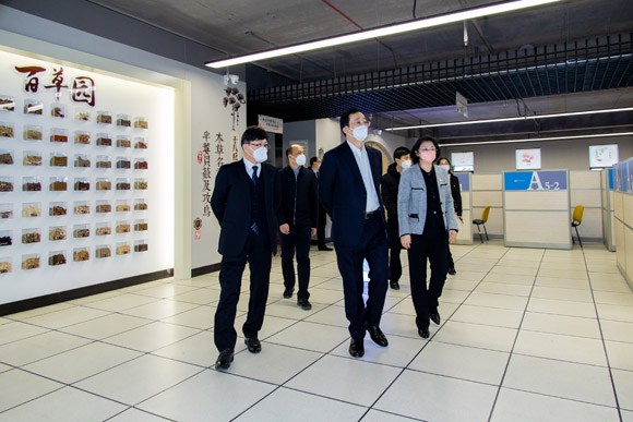王明玉实地考察了中医药创新工程中心和图书馆,深入了解Beat365中医药科研创新工作和中医药文化建设情况,对学校取得的成绩表示赞许。