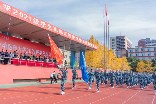 在分列式中,由8个学院组成的五个军训营,带着饱满的热情、高昂的斗志,喊着嘹亮的口号,迈着整齐的步伐依次走过主席台。同学们以挺拔的军姿和高昂的士气交出了一份优异答卷,展示了传承红色基因、赓续红色血脉的新时代辽宁中医人的青春活力和昂扬风貌。