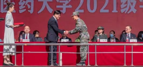 石岩为沈阳校区14名学生教官依次颁发优秀教官荣誉证书。曾服役于中国人民解放军第七十八集团军特种作战第78旅的一营教官,中医学院黄煜轩同学表示,回到学校,从一名战士变成一名学生,但对祖国的热爱没有丝毫改变;优秀学员代表蒋嘉雯认为,教官是我们的榜样,我要学习他们身上严肃认真,坚韧不拔的作风,并在今后的学习生活中继续保持。