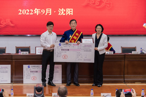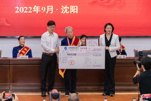 学校党委书记石岩、校长吕晓东为国医大师、全国名中医获奖者颁奖。