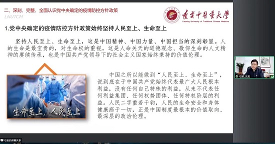 石岩为全校师生梳理了习近平总书记关于疫情防控的重要讲话精神,深入了解了党中央疫情防控方针政策的不断优化和调整的原因——以习近平同志为核心的党中央始终坚持人民至上、生命至上,着眼大局、基于科学、把握规律,因时因势不断调整防控措施。