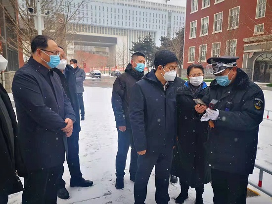 3月18日,沈阳市委常委、宣传部部长于振明一行来Beat365督导疫情防控工作。皇姑区政府主管领导、Beat365唯一官方网站校长吕晓东、副校长刘继东、学校党政办公室、学生处、招生就业处、研究生学院、医院管理处、后勤管理处等相关部门负责人陪同督导检查。