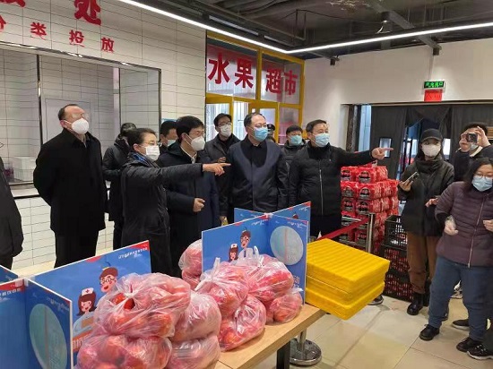 于振明一行先后来到校门岗、学生宿舍、食堂和快递点等点位督导检查。在校门岗,于振明考察了学校落实校园封闭管理的举措并查看了保安的核酸报告,强调要严把校门关,严格执行校园封闭管理制度,随后在校园内边走边查看学校各项防疫措施,询问隔离宿舍准备情况。于振明来到学生3号公寓,查看在校学生的学习生活情况,强调要落实好“四长制”,加强对人员、物资的定时、定点、定向管理,确保行程轨迹可追溯,保证在校师生员工的正常生活秩序。在学生食堂,吕晓东介绍了由学校领导、中层干部、辅导员、后勤、食堂、安保、学生志愿者各方面力量组成的管理服务队伍24小时在校园内为学生保驾护航以及生活物资储备、防疫物资储备等方面情况。于振明对此表示肯定,向疫情期间坚守在为学生服务一线的辅导员、工作人员、志愿者表示慰问,强调要想学生之所想,特别要保证好学生的饮食,时刻让学生感到有人为他们服务,及时为他们排忧解难;还要特别注意关注学生的心理问题,细致耐心地做好学生的思想工作。在快递点,于振明详细了解了学校快递处置流程,强调要严格消毒,切实做好全流程管理。