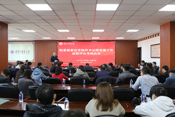12月29日,学校党委召开2021年度院(系)级单位党组织书记抓党建工作述职评议考核大会。学校领导、党委委员、纪委委员,各院(系)级单位党组织书记、专兼职组织员,各附属医院组织部长,各级党代表、人大代表、政协委员,学校党务工作部门负责人和党外同志代表参会并现场测评。