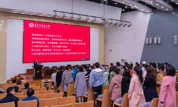 10月26日下午,2021年新教师校本培训开班仪式在校本部学术报告厅举行,大连校区新教师视频参加开班仪式。学校党委书记石岩出席仪式并发表讲话,仪式由人事处处长闫海军主持。