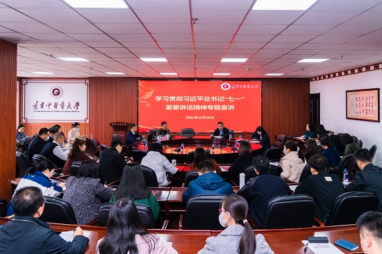 房广顺教授在宣讲中指出,习近平总书记“七一”重要讲话是中国共产党带领全国人民向第二个百年奋斗目标进军的政治宣言和行动纲领,广大师生在学习贯彻“七一”重要讲话精神时需要深刻领会中国共产党百年奋斗的伟大成就,深刻领会“七一”重要讲话的新思想、新观点、新要求,将“七一”重要讲话的精神融入学习、工作的实践中,在习近平总书记重要讲话鼓舞之下争取更大的光荣。