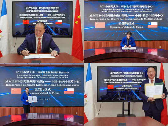 9月28日上午,学校举办了同智利北京国际经贸服务中心联合成立的中医药服务出口基地——中国-拉美中医药中心云签约仪式。学校校长吕晓东,北京侨商会副会长、智利北京国际经贸服务中心总经理关金涛分别代表中智双方出席签约仪式。