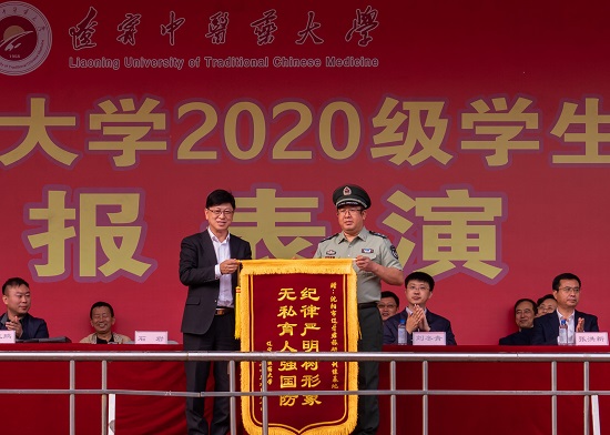 吕晓东在讲话中首先热烈祝贺2020级同学们战胜了似火骄阳和身体极限,圆满完成了本次军训任务,并表扬同学们在这次军训中展现出了自己迎接困难时的信心与勇气,展现出了战胜困难时的意志与能力,展现出了新一代辽宁中医学子的良好精神风貌。同时代表学校向沈阳市辽牙君旅研学训练基地的领导及全体军训教官表示衷心的感谢及崇高的敬意;向一直服务在军训第一线的辅导员和工作人员表示诚挚的谢意;向受到表彰的优秀教官和优秀学员表示热烈的祝贺。之后校长送给2020级学生三味辽宁道地药材,希望同学们在此放飞梦想,筑梦远航。一是“细辛”——细致入微,志存高远。希望同学们在追求卓越的象牙塔中真正做到心中有梦想,脚下有力量,志存高远,笃行于微,在实现中国梦的生动实践中放飞青春梦想,在建设中医药强省的不懈奋斗中书写人生华章;二是“龙胆”——机智勇敢,临危不乱。青春易老,韶华易逝,希望同学们在最好的年纪,奋勇争先,临危不乱,勇做时代的弄潮儿,充分展现新一代辽宁中医学子的风采;三是“牛蒡”——脚踏实地、艰苦奋斗。时刻牢记“老黄牛”的精神,多一些忠诚与善良;多一些实干和奋斗;多一些坚韧和倔强。凡事都要脚踏实地去做,不驰于空想,不鹜于虚声。严谨务实,扎实肯干,努力成为有理想、有才干、有学问的大学生,为实现中华民族伟大复兴中国梦而不懈奋斗!最后校长寄语全体同学牢记“厚德博学、继承创新”的校训精神,肩负起新一代辽宁中医人的责任担当,在建设中医药强省、传承创新中医药事业、建设伟大祖国的征程中努力实现自己的人生价值!