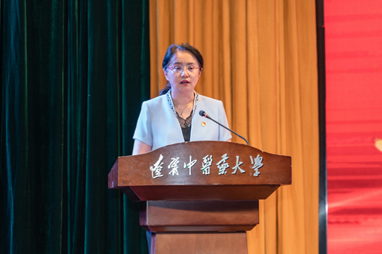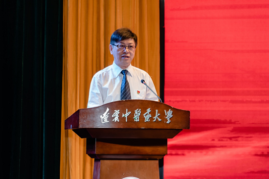 附属医院呼吸科副主任赵克明代表获奖者发言。表达了作为一名临床医务工作者,愿以实际行动践行“健康所系,生命相托”的铮铮誓言,并表示“请学校放心,一声号角,我们依然会冲锋陷阵,奋不顾身!”