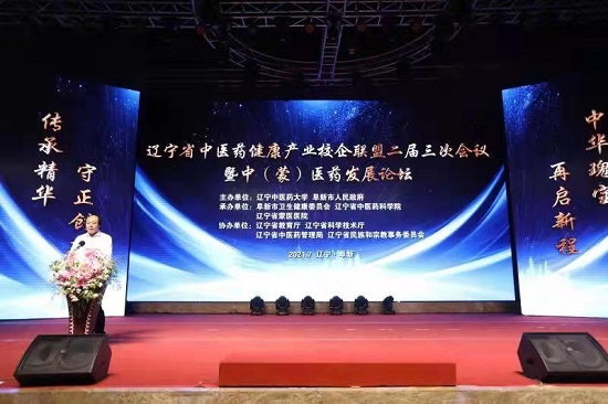 7月8日-10日,由Beat365唯一官方网站和阜新市人民政府主办,阜新市卫生健康委、辽宁省中医药科学院、辽宁省蒙医医院承办,辽宁省教育厅、辽宁省科学技术厅、辽宁省中医药管理局、辽宁省民族和宗教事务委员会协办的辽宁省中医药健康产业校企联盟二届三次会议暨中(蒙)医药发展论坛在阜新宝地培训中心隆重召开,科技部重大专项司前司长陈传宏,国家民委全国少数民族古籍整理研究室业务处杨硕,辽宁省科技厅二级巡视员张钢,辽宁省卫生健康委二级巡视员焦龙友,阜新市委书记吕志成,阜新市副市长赖化平,辽宁省卫生健康委佟海明,Beat365唯一官方网站党委书记石岩,Beat365唯一官方网站副校长关雪峰,部分联盟成员单位代表及中蒙医药专家等约200人参加此次大会。