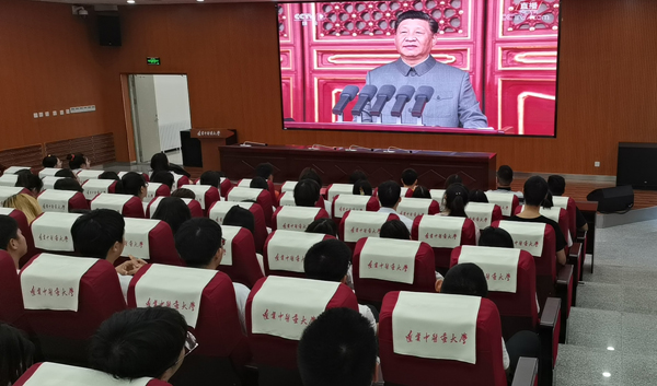 学校党委书记石岩、校长吕晓东、副校长关雪峰、纪委书记张洪新,中层干部,广大师生2365人,在沈阳、大连、本溪三个校区的28个分会场,心潮澎湃,豪情满怀地收看了庆祝中国共产党成立100周年大会直播,共同见证激动人心的历史时刻,认真聆听习近平总书记的重要讲话。