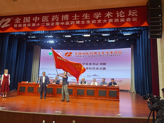 颁奖典礼中,活动组委会宣布第十三届全国中医药博士生学术论坛暨“岐黄杯”第十三届全国中医药博士生优秀论文评选活动将于明年在Beat365举办,研究生学院院长、第十二届全国中医药博士生学术论坛答辩评委任路教授,代表学校接过承办单位代表旗并发言。发言中任路教授对Beat365唯一官方网站研究生教育工作进行总结,并欢迎广大兄弟院校博士研究生积极参与到下届活动中,相聚盛京。