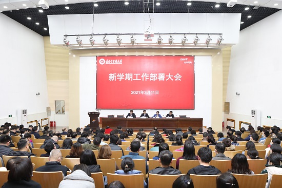 党委书记石岩指出,在全国“两会”胜利召开之际,学校召开2021年新学期工作部署会议,是以实际行动贯彻落实全国“两会”精神、贯彻落实党的十九届五中全会精神。他结合新形势新任务对做好新学期工作提出三点要求:一是以党的政治建设为统领,不断提高政治站位。二是狠抓各项工作内涵建设水平,推动学校高质量发展。三是贯彻落实新发展理念,建立健全学校高质量发展保障机制。
