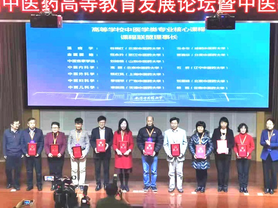 中医教指委主任委员、北京中医药大学党委书记谷晓红和教育部高等教育司农林医药处处长高斌为课程联盟理事长颁发聘书