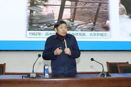 驼人控股集团董事长王国胜用自己的亲身经历为同学们上了一堂生动的创新创业课,又结合现实的就业情况给同学们上了一堂的就业指导课。他从自身的求学之路谈起,因身体残疾,自小便立志从事医学事业,虽因家庭贫困失掉了上大学的机会,但在各行各业的摸爬滚打中坚持走着医学之路。他强调:事业,是他的第一生命线。无论面对怎样的困境,他都不轻易放弃自己的方向,脚踏实地地走好人生成长的每一步。他还强调了“驼人”集团商标的意义,“驼”字小,“人”字大,寓意集团顶天立地,并希望青年人能肩负起社会的责任、经得起时间的考验,做堂堂正正的人、干正正经经的事。