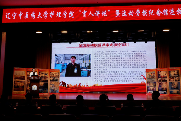 在签约仪式之前,护理学院开展了以“劳模引领成长 劳动筑梦青春”为主题的“育人讲坛”暨流动劳模纪念馆进校园活动。