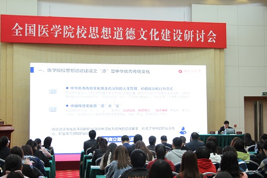 石岩教授以《新时代医学院校思想道德建设的几点思考》为题进行主旨报告