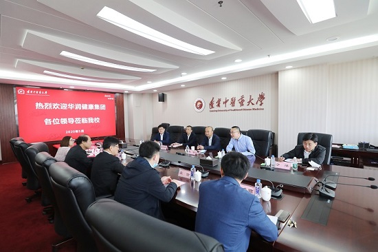 之后双方召开座谈交流会,围绕产、学、研、医、康、养等方面开展合作深入研讨交流。石岩介绍了学校教学、科研、学科、医疗、国际合作、校企合作等方面建设发展的情况,重点介绍了打造环Beat365唯一官方网站中医药生态圈,即中医药产业园区、中医化文化园区、中医药创新园区、中医药商业园区的发展规划,以及推进Beat365唯一官方网站GMP实训基地(辽宁省中药制剂工程研究中心、中药制剂中心)等重大项目建设的相关情况。宋清介绍了华润健康集团建设发展情况以及对中药制剂、康复、养老等方面发展前景的展望。
