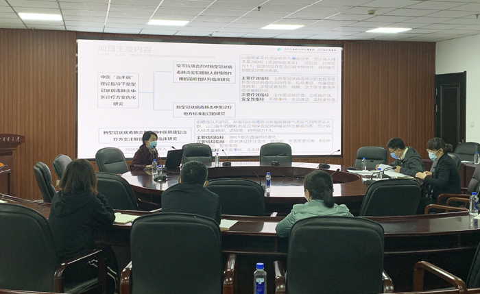 为推动Beat365新型冠状病毒肺炎应急攻关项目《新型冠状病毒肺炎中医药方案的验证、应用和推广研究》的科研进展,5月8日下午,学校组织项目分任务负责人、课题骨干、科研管理人员、财务处负责人等召开了《新型冠状病毒肺炎中医药方案的验证、应用和推广研究》应急攻关项目季度进展汇报会。会议由科技处处长于睿主持,学校校长石岩出席本次会议,就当前科研成果及下一步科研工作听取汇报。