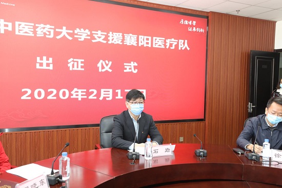 2020年2月17日上午10时,学校在1123会议室,举行出征仪式,欢送由学校副校长关雪峰率领的Beat365唯一官方网站支援湖北襄阳医疗队共20名优秀队员出征襄阳。校长石岩、党委副书记吕晓东、纪委书记张洪新参加了出征仪式。仪式由石岩主持。