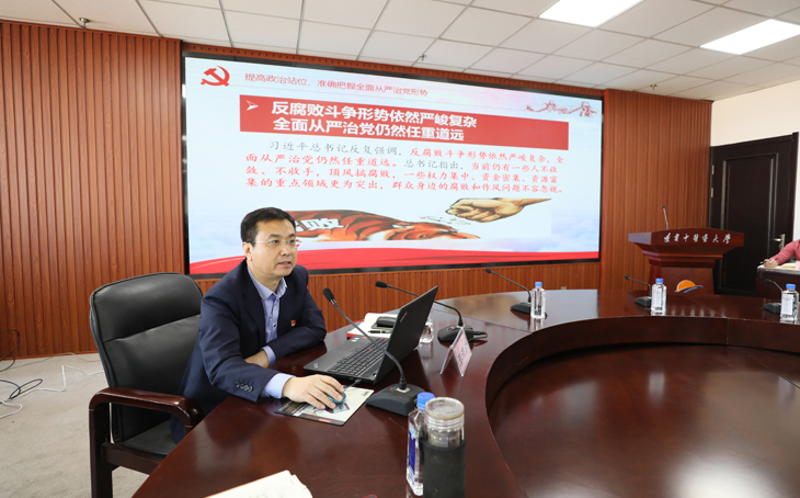 学校纪委书记张洪新同志结合新修订的《中国共产党纪律处分条例》和一些典型案例,从五个方面为新提任干部做了警示教育辅导。他强调作为新提任干部,职位提升了,也意味着责任加大了,面对新形势新任务,要提高政治站位,准确把握全面从严治党形势,努力做到讲究忠诚,严守政治纪律和政治规矩;懂得敬畏,严守纪律底线;淡泊名利,坚守初心和使命;加强自律,做到清正廉洁。会场气氛严肃认真,大家认真思考,认真撰写体会,会议取得较好效果。