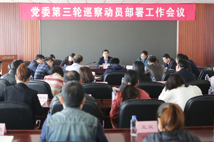 张洪新结合主题教育讲党课,代表学校党委巡察工作领导小组对党委第三轮巡察工作进行动员部署。他强调,做好巡察工作一要统一思想认识,明确目标方向。要把党的初心和使命、巡察工作初心使命和被巡察党组织职责使命贯通起来,提高政治站位,完善思路举措,推动巡察工作高质量发展。二要突出监督重点,精准发现问题。要紧扣“六围绕一加强”,细化监督内容,全面开展政治监督。三要落实整改责任,做好巡察“后半篇文章”。要充分贯彻落实习近平总书记重要讲话精神,将巡视整改作为检验“四个意识”的试金石,压实整改主体责任,做好督促检查。四要加强组织协调,严明巡察纪律要求。要站在讲政治、讲大局的高度,切实增强做好巡察工作的思想自觉和行动自觉,精心组织,密切配合,严肃纪律要求,确保巡察工作高效有序推进。