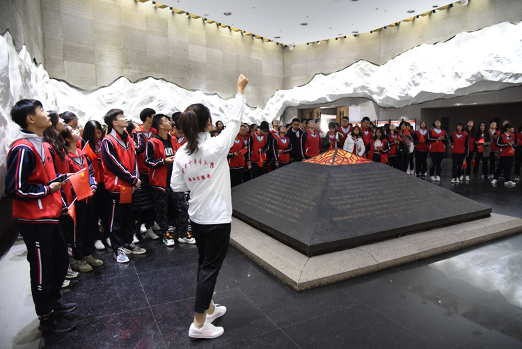 现场教学中,马克思主义学院思想道德修养与法律基础教研室陈强老师首先阐明大学生入学后“系好人生的第一粒扣子”的重要性,从而强调铭史承志的重要性,用失败的教训警示人,用成功的经验激励人,并讲述中国精神是强国之魂,是以爱国主义为核心的民族精神和以改革创新为核心的时代精神的辩证统一体;引导广大学生爱祖国的大好河山、爱自己的骨肉同胞、爱祖国的灿烂文化、爱自己的国家;号召大学生以社会主义核心价值观为引领,积极献身于新时代中国特色社会主义伟大事业,献身于促进祖国统一大业,献身于实现中华民族伟大复兴的中国梦的实践,让个人梦想助力“中国梦”的实现,让“中国梦”成为“个人梦”实现的更广阔舞台。