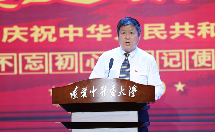 曾庆捷在大会上发表重要讲话。他指出,正值举国上下喜迎中华人民共和国成立70周年和全党上下深入开展“不忘初心、牢记使命”主题教育之际,代表学校党委热烈庆祝新中国成立70周年,并向祖国表达诚挚的祝福和美好的祝愿。建校61年来,学校坚持党的领导,坚持社会主义办学方向,坚持党的教育方针,秉承“厚德博学、继承创新”校训精神,历经几代人辛勤耕耘和不懈奋斗,开创了辽宁中医发展的新篇章。