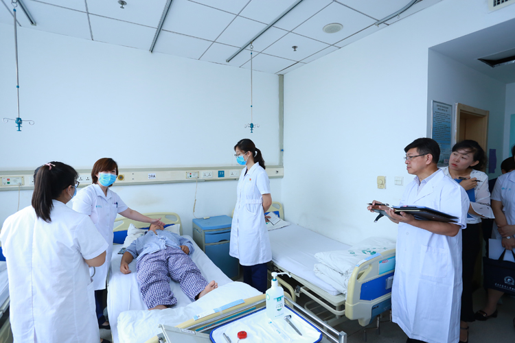 石岩首先听取附属医院党委副书记、院长于永铎关于附属医院教学工作汇报,随后,对附属医院的相关临床科室教学查房工作进行了现场观摩和督导,并分别召开了临床带教教师和学生代表的座谈会。