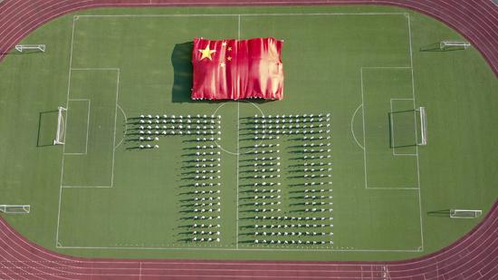 (学校学生摆出“70”字样庆祝中华人民共和国成立70周年)