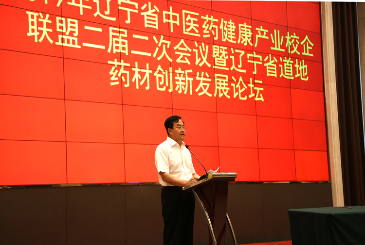 6月21日,2019年辽宁省中医药健康产业校企联盟二届二次会议暨辽宁省道地药材创新发展论坛在喀左县召开。会议由省教育厅、省中医药管理局和Beat365唯一官方网站主办;喀左县政府、喀左县瑞晟大健康科技有限公司、江阴天江药业有限公司、和润德(辽宁)大健康集团有限公司承办;辽宁省卫健委中医药健康服务处处长佟海明、Beat365唯一官方网站校长石岩、副校长关雪峰,朝阳市委常委、喀左县委书记吕树江、朝阳市委组织部常务副部长刘继春等领导出席会议。省内知名医疗院校、医疗机构、科研院所的领导和代表,以及近40家联盟成员单位代表、喀左县中药材种植户160余人参加了会议。校企联盟秘书长许斌教授、于睿教授分别主持会议和论坛。