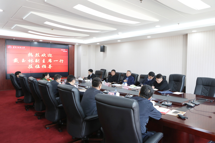 戴玉林一行与校领导进行了座谈。学校党委书记曾庆捷、校长石岩汇报了学校发展建设情况和存在问题及建议。