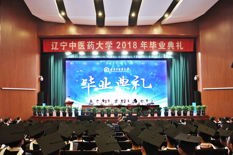 礼堂内大屏幕上播放着回顾毕业生校园生活、学习历程的视频《你好,辽中医》;在学生们演唱的《鸿雁》略带伤感的悠扬旋律中,学校领导及各学院院长步入主席台。上午8时,毕业典礼在嘹亮的国歌声中拉开帷幕。