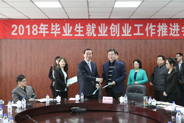 为进一步落实工作目标和任务,杨关林现场与各学院书记签订就业创业工作目标责任状。